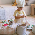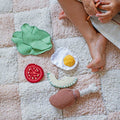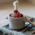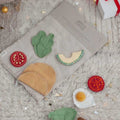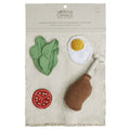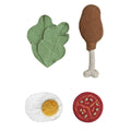 ¿Cuál es el plato del día? ¡La cocina tiene todo lo que los niños necesitan para preparar algo delicioso! ¡Y qué podría ser más divertido que cocinar con este juego de juguetes textiles hechos a mano que incluye ingredientes para una combinación de pollo, huevo y ensalada! ¡Parece que su cena ya está preparada!