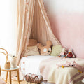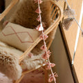 Las borlas tan características de nuestros diseños de alfombras y cojines también vienen en forma de guirnalda decorativa para dar un toque bohemio a la habitación de los niños. Se divertirán cambiándola de sitio para decorar ellos mismos su habitación.