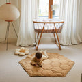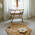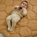Un espacio de juego interactivo para estimular los sentidos del bebé. La alfombra de juego Honey Comb tiene forma hexagonal y está acolchada con el característico patrón de panal. Confeccionada en suave popelina de algodón orgánico en color Miel y rellena de suave poliéster reciclado. La alfombra de juego viene con un encantador sonajero en forma de abeja, que contiene papel arrugado y un sonajero en su interior.