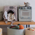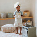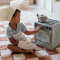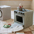 ¡Es hora de jugar pat-a-cake y ponerlo en el horno para el bebé y para mí! Esta cesta de almacenamiento con forma de cocina es mucho más que una cesta. Es una cocina de juguete infantil de tela, completa con una olla y una manopla para el horno. El juego simbólico nunca fue tan elegante con esta canasta de cocina de juguete de tela completamente hecha a mano, revestida en un color polvoriento de salvia azul, que presenta detalles intrincados como una puerta de horno batiente, perillas giratorias o una estufa de gas perfilada con cordones bordados. ¡Los niños pueden jugar a imaginarse y sacar ese pequeño chef que llevan dentro!