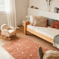 El tapete Mini Dot Chestnut es una opción divertida y suave para cualquier habitación, con un diseño de lunares que nunca pasa de moda.