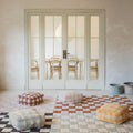 ¡Por amor a los azulejos! Este diseño representa el patrón tradicional de azulejos de cocina de tablero de ajedrez en una alfombra. Las juntas de las baldosas revelan el lienzo desnudo debajo. ¡Los azulejos de la cocina nunca se sintieron tan suaves al pisarlos!