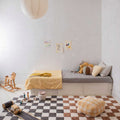 Este diseño representa el tradicional patrón de azulejos de cocina en forma de tablero de ajedrez sobre una alfombra. Sus cuadrados contrastantes en color caramelo y crema añaden un toque audaz a la decoración de cualquier habitación.