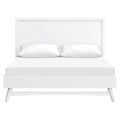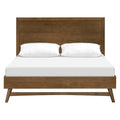 ESTILO MODERNO REFINADO DE MEDIADOS DE SIGLO: Con una silueta moderna y limpia en cálidos tonos madera. Las patas cónicas y acampanadas aportan un toque divertido a esta sofisticada cama de matrimonio.