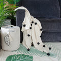 ¡Una necesidad! Confeccionado en algodón en su color natural y con pompones negros. Manta de punto liso 100% algodón, perfecta para el sofá o pie de cama, aporta un toque acogedor a cualquier estancia de la casa.