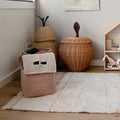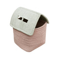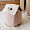 Completa la decoración de la habitación infantil con una práctica cesta de almacenamiento en forma de casita para que los más pequeños guarden sus juguetes y muchos tesoros. Cada canasta está hecha a mano con cordones de algodón trenzado extra grueso que presenta la base cuadrada en color Natural, el techo cosido en la sombra de Toffee y lindas ventanas recortadas en la superficie.