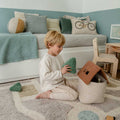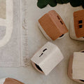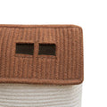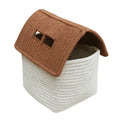 Completa la decoración de la habitación infantil con una práctica cesta de almacenamiento en forma de casita para que los más pequeños guarden sus juguetes y muchos tesoros. Cada canasta está hecha a mano con cordones de algodón trenzado extra grueso que presenta la base cuadrada en color Natural, el techo cosido en la sombra de Toffee y lindas ventanas recortadas en la superficie.