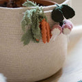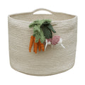 ¡Este cerdito fue al mercado...' y trajo una canasta llena de verduras! Esta práctica canasta es una solución de organización decorativa, completa con lindas verduritas de tela rellenas. ¡Es perfecto para guardar juguetes, ropa, almohadas, libros o incluso comestibles! También es ideal como corrector de macetas, ¿y por qué no? ¡Agárralo por las asas y sácalo de compras!