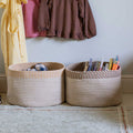 Este almacenamiento imprescindible es tanto decorativo como práctico, y la combinación perfecta para nuestras alfombras y accesorios. Es adecuado para organizar juguetes y, especialmente, para clasificar artículos más grandes. En la cocina, también puedes usarlo como panera para guardar baguettes frescas o para almacenar frutas y verduras de tamaño considerable. Sean cuales sean sus necesidades de almacenamiento, ¡todo vale con una canasta como esta!