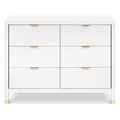 Con su diseño de tambor texturizado, elegantes pies dorados y tiradores de cajones modernos, la cómoda Brimsley Tambour fue diseñada para aquellos que aprecian la combinación perfecta de sofisticación y funcionalidad. La cómoda cuenta con 6 cajones espaciosos para ropa, mantas y más. Transforme su espacio con una pieza llamativa que no solo organiza sino que eleva el estilo de su habitación. Su versatilidad garantiza que pasará sin problemas de un elemento básico de la guardería a una pieza elegante en cualquier habitación de su hogar.