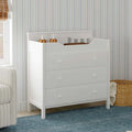 La cómoda de 3 cajones Jayden, igualmente sofisticada, es la opción de almacenamiento perfecta para toda la vida. Con tres cajones espaciosos, este tocador proporciona una gran cantidad de almacenamiento para los años de la guardería y mas allá. Los resistentes cajones de la cómoda, nuevos y mejorados con herrajes deslizantes de metal, se abren y cierran suavemente. Los mecanismos de parada incorporados en la cómoda permiten que los padres descansen tranquilos, sabiendo que Jayden es la opción seguro.