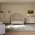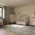 La cuna Beckett Rustic 4 en 1 convertible con cubierta curva une el diseño tradicional con el moderno gracias a su acabado de madera texturizada, su silueta limpia y sus cuidados detalles. Con un panel trasero elevado, elegantes listones, patas cónicas sencillas y cortes en inglete con un moderno borde de 45 grados, la cuna Beckett es una pieza de transición que crecerá con tu familia.