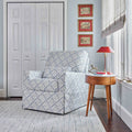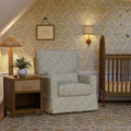 La mecedora Sarah Flint x Namesake Crawford ofrece una versión mejorada del estilo tradicional y eleva la comodidad en la habitación del bebé a un nuevo nivel con su lujoso respaldo acolchado, almohada lumbar adicional y asiento amplio. Su suave movimiento de vaivén te ayuda a mecer a tu bebé para que se duerma con facilidad, mientras que su práctico giro crea un descanso acogedor tanto para ti como para tu bebé.