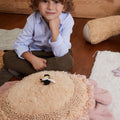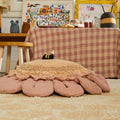 "¡Suave, fresco y cómodo! Nuestro cojín de suelo Pink Daisy es un generoso cojín con forma de flor. El cojín más bonito para estar cómodo en el suelo mientras lees, juegas o simplemente te relajas. Con grandes pétalos de rosa en lona de algodón, todo Alrededor, el cojín presenta un centro de algodón con mechones en chenilla dorada mezclado con hileras de pelos más largos para crear la superficie texturizada del centro de una flor. Relleno con relleno de poliéster suave y sin cremallera. Combínalo con más de uno para crear tu espacio. en flor, o con el cojín Little Daisy para crear un ambiente verdaderamente primaveral.