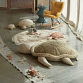 ¡Saluda a la señora Tortuga! Con una capa de pelo de algodón suave de color verde oliva con mechones en un patrón simétrico, este puf es perfecto para que se suban los más pequeños. Con patas, cabeza y cola de lona de color natural y vientre de lona verde oliva, la funda del puf es lavable: basta con quitar el relleno interior mediante la cremallera inferior. La parte principal del puf está rellena de perlas de poliestireno para crear un asiento perfecto para sus hijos, y la cabeza y las patas están rellenas de polirelleno suave.