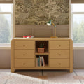 Líneas limpias y un almacenamiento bien pensado se combinan en la cómoda TipToe de 6 cajones con compartimentos. Seis cajones de deslizamiento suave se combinan con compartimentos centrales abiertos para crear un aspecto ligero y moderno que facilita la organización diaria. Diseñada con bordes redondeados, una estructura robusta y materiales no tóxicos de origen sostenible, es una pieza de almacenamiento versátil que se adapta a tu espacio.